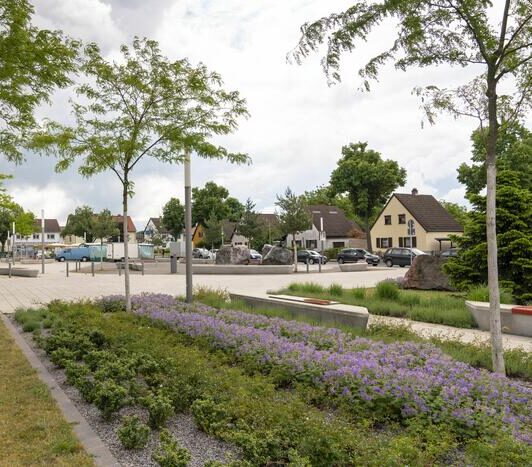 Insgesamt wurden zehn neue Bäume gepflanzt und über 40 Quadratmeter Fläche entsiegelt. Vor allem die neuen Bäume sorgen künftig für mehr Schatten und machen den Platz gerade an warmen Tagen deutlich angenehmer. Die zusätzlichen Grünflächen laden zum Verweilen ein und stärken den Platz als Treffpunkt im Stadtteil.